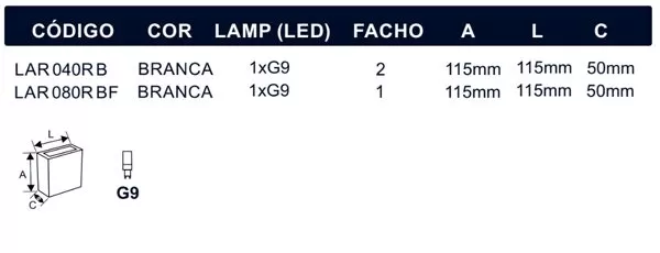 LAR040R – Arandela Mini Box para Lâmpada G9 – Facho Único e Duplo