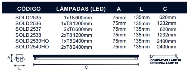 Opcional: Soquetes G5 compatível com lâmpadas T5;